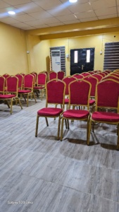 Sardius Hall is our biggest and most spacious hall. It sits on the second floor of Lydia Halls Event Centre and boasts a sitting capacity of 400 guests in banqueting style and 800 guests in an open sitting with full Air conditioners, neat and very clean rest rooms, changing room, inbuilt sound systems, projector, and food serving area.